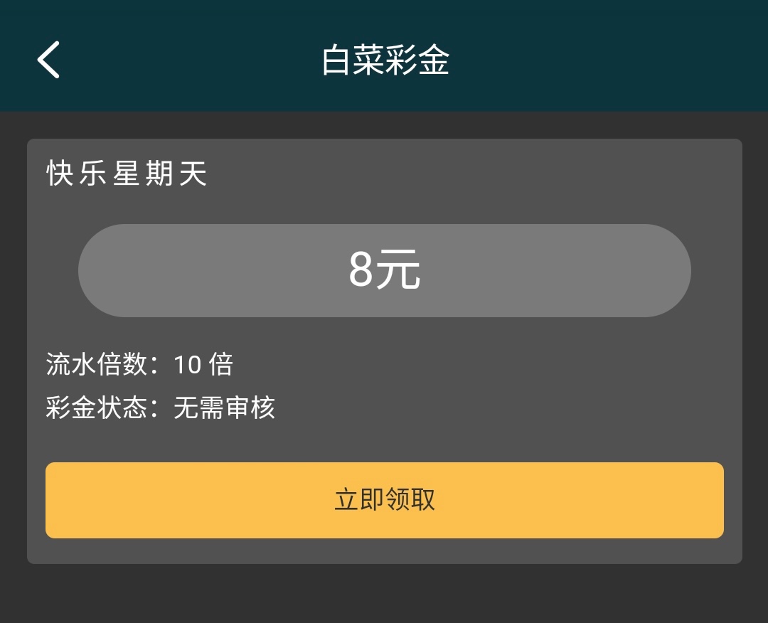 有号的兄弟可以上去看看有没有,要这周充值过100的才能领取,彩金10倍流水